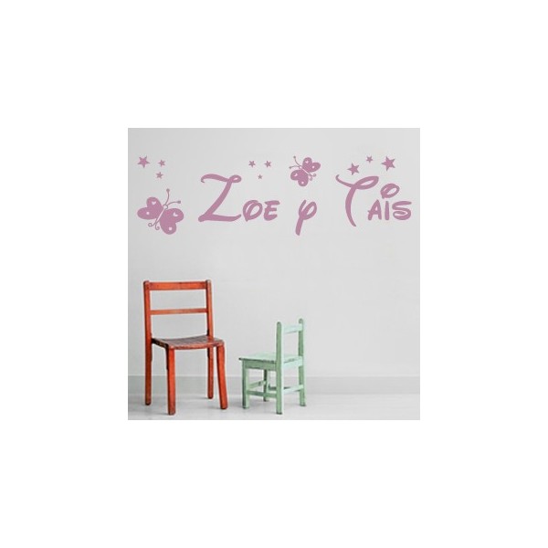 Vinilos decorativos con nombres para decoracion de interiores con los nombres Zoe y Tais, con mariposas y estrellitas, recomendado para superficies lisas. Son muy sencillos de colocar, y la colocación es muy limpia y rápida.