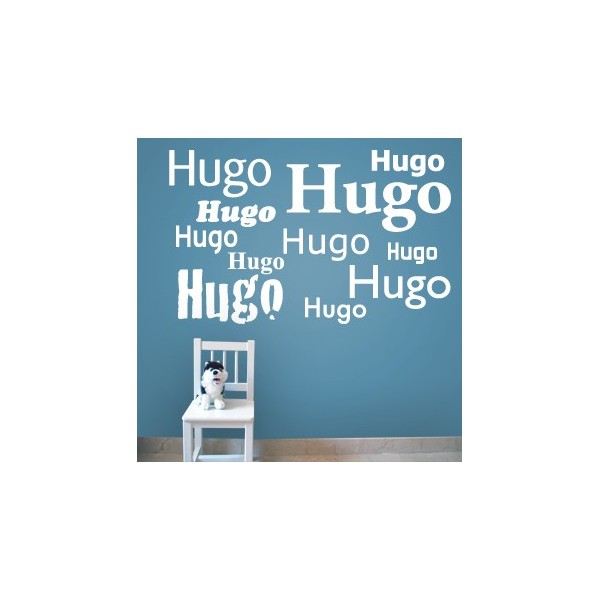 Vinilos decorativos con nombre Hugo en diferentes tamaños y tipos de letra para decoración de paredes, recomendado para superficies lisas. Son muy sencillos de colocar, y la colocación es muy limpia y rápida.