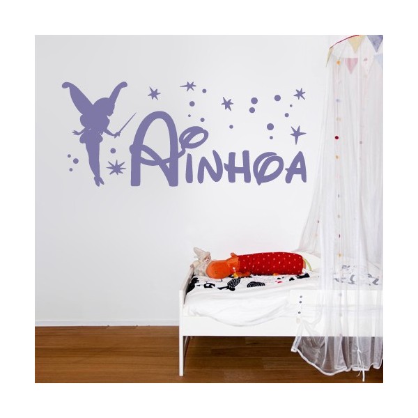 Pegatinas de paredes con nombre con una hada, esrellas y el nombre Ainhoa, para decoración de paredes, recomendado para superficies lisas. Son muy sencillos de colocar, y la colocación es muy limpia y rápida.