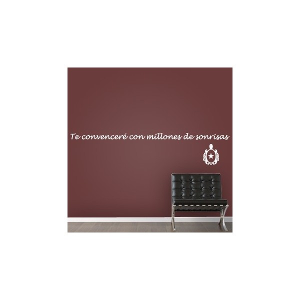 Pegatinas de paredes personalizadas con la frase "Te convenceré con millones de sonrisas" para decoración de paredes, recomendado para superficies lisas. Son muy sencillos de colocar, y la colocación es muy limpia y rápida.