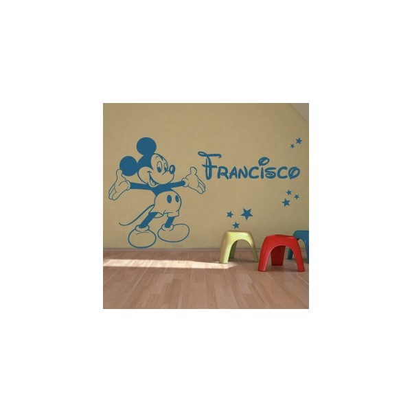Los colores de los vinilos infantiles con el nombre Francisco y estrellas y dibujo animado que aparecen en está simulación son una aproximación a su color real, varían en función de la calibración de su monitor.