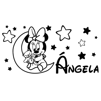 Vinilos infantiles con el nombre Ángela y personaje de dibujos animados en la luna con estrellas para decoración de interiores y paredes, recomendado para superficies lisas. Son muy sencillos de colocar, y la colocación es muy limpia y rápida.
