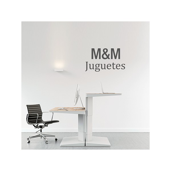 Vinilos decorativos personalizados con texto M&M Juguetes para decoración de interiores y paredes, recomendado para superficies lisas. Son muy sencillos de colocar, y la colocación es muy limpia y rápida.