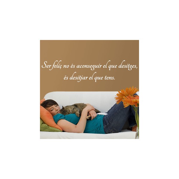 Vinilos decorativos de texto ser feliz en catalán para decoracion de interiores y paredes, recomendado para superficies lisas. Son muy sencillos de colocar, y la colocación es muy limpia y rápida.
