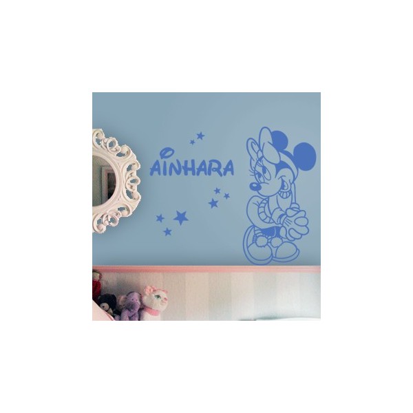 Los colores de los vinilos infantiles con el nombre Ainhara y estrellas y dibujo animado que aparecen en está simulación son una aproximación a su color real, varían en función de la calibración de su monitor.