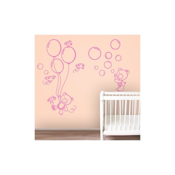 Vinilos decorativos personalizados con ositos y pajaritos para decoración de interiores y paredes, recomendado para superficies lisas. Son muy sencillos de colocar, y la colocación es muy limpia y rápida.