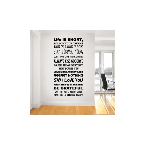 Vinilos decorativos con textos en inglés para decoracion de interiores y paredes, recomendado para superficies lisas. Son muy sencillos de colocar, y la colocación es muy limpia y rápida.