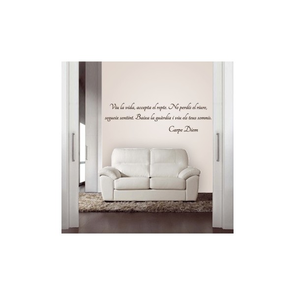 Los colores de los vinilos decorativos de texto con una sobre la vida en catalán que aparecen en está simulación son una aproximación a su color real y pueden variar en función de la calibración de su monitor.