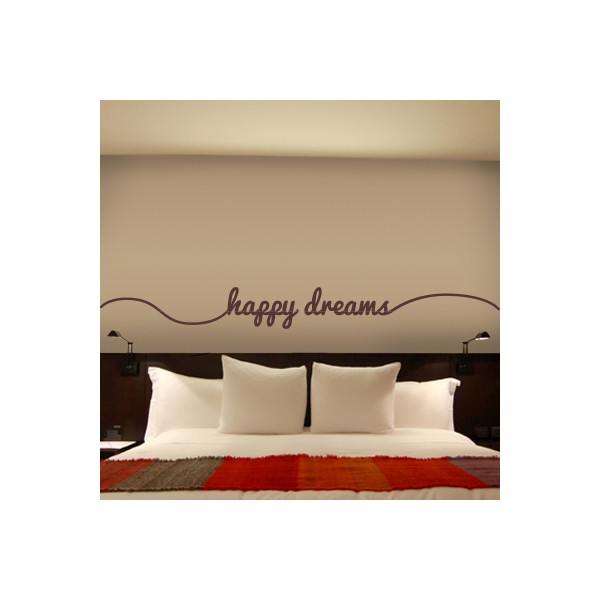 Vinilos decorativos con la frase "happy dreams", para decoración de interiores y paredes, recomendado para superficies lisas. Son muy sencillos de colocar, y la colocación es muy limpia y rápida.