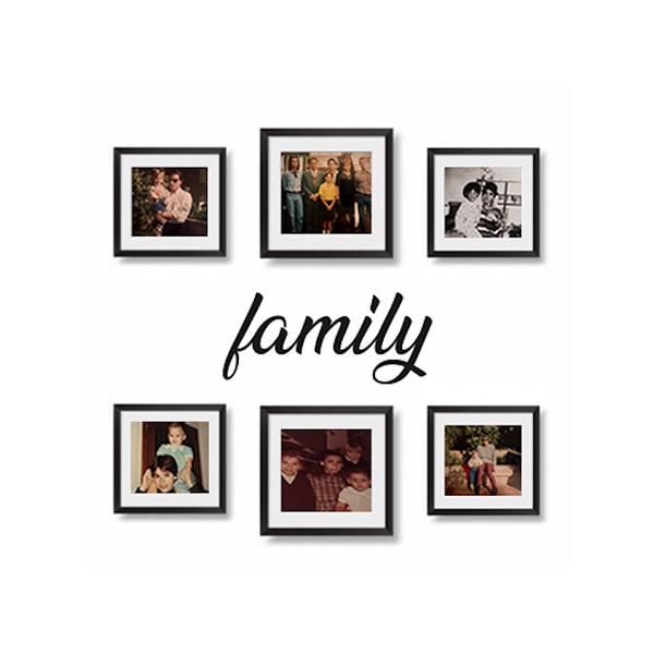 Los colores de los vinilos decorativos de texto con la palabra en inglés "family" que aparecen en está simulación son una aproximación a su color real y pueden variar en función de la calibración de su monitor.