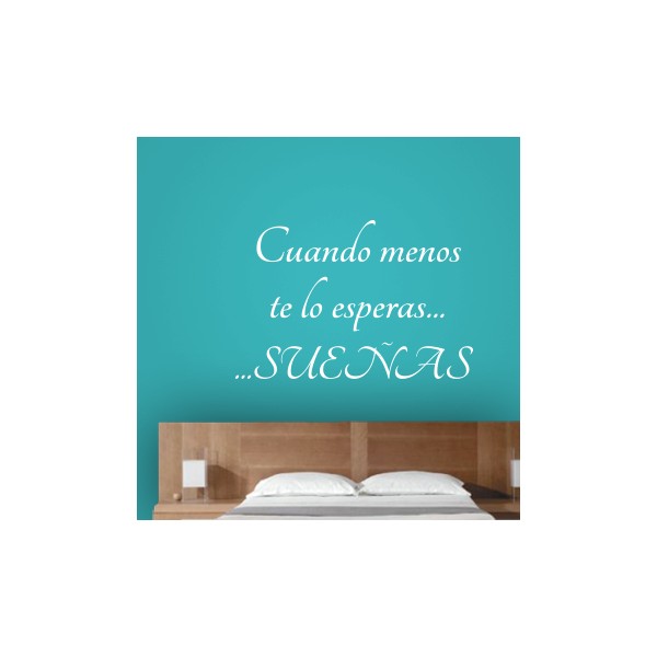 Vinilos decorativos con la frase "Cuando menos te lo esperas...SUEÑAS", para decoración de interiores y paredes, recomendado para superficies lisas. Son muy sencillos de colocar, y la colocación es muy limpia y rápida.