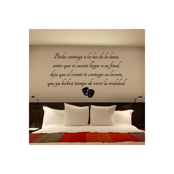Las pegatinas decorativas con el texto "Baila conmigo a la luz de la luna, antes que el cuento llegue a su final, deja que el viento te contagie su locura, que ya habrá tiempo de vivir la realidad" son una muy buena opción para personalizar tus paredes y añadir mensajes, ideas, frases célebres o poemas y darle un toque especial al ambiente que te rodea.