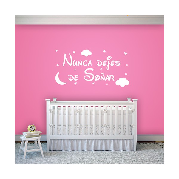 Los colores de los vinilos decorativos con la frase "Nunca dejes de soñar" que aparecen en está simulación son una aproximación a su color real, varían en función de la calibración de su monitor.