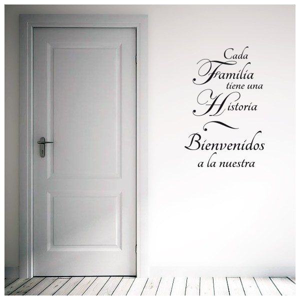Vinilos decorativos vinilos decorativos con frase "Cada Familia tiene su Historia. Bienvenidos a la nuestra" para decoración de interiores y paredes, recomendado para superficies lisas. Son muy sencillos de colocar, y la colocación es muy limpia y rápida.