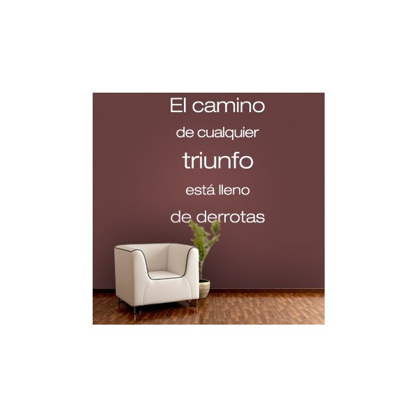 Vinilos decorativos con texto con la frase "El camino de cualquier triunfo esta lleno de derrotas" para decoracion de interiores y paredes, recomendado para superficies lisas. Son muy sencillos de colocar, y la colocación es muy limpia y rápida.
