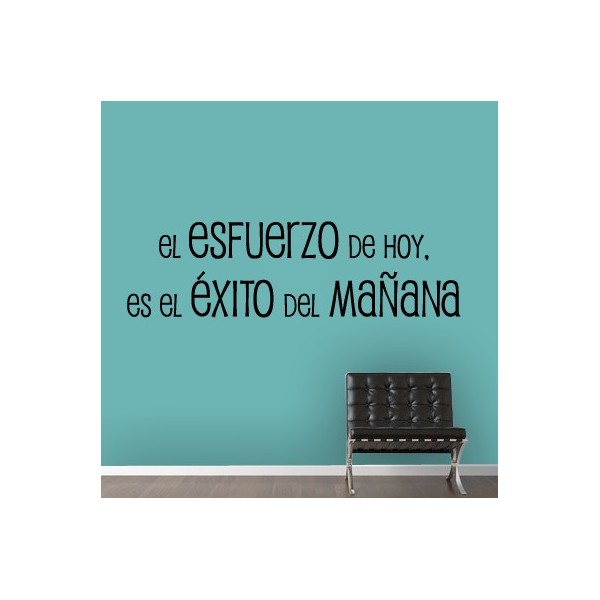 Vinilos decorativos con la frase "El esfuerzo del hoy es el éxito del mañana" para decoración de paredes de forma original, recomendado para superficies lisas. Son muy sencillos de colocar, y la colocación es muy limpia y rápida.