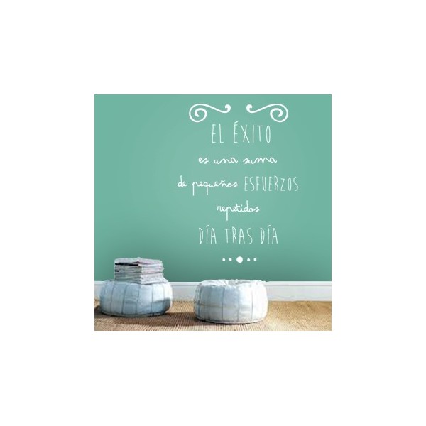 Vinilo decorativo con texto con la frase "El éxito es una suma de pequeños esfuerzos, repetidos día tras día" para decoración de interiores y paredes, recomendado para superficies lisas. Son muy sencillos de colocar, y la colocación es muy limpia y rápida.