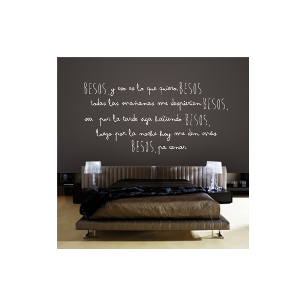 Vinilos decorativos con textos con canción sobre los besos para decoración de interiores y paredes, recomendado para superficies lisas. Son muy sencillos de colocar, y la colocación es muy limpia y rápida.