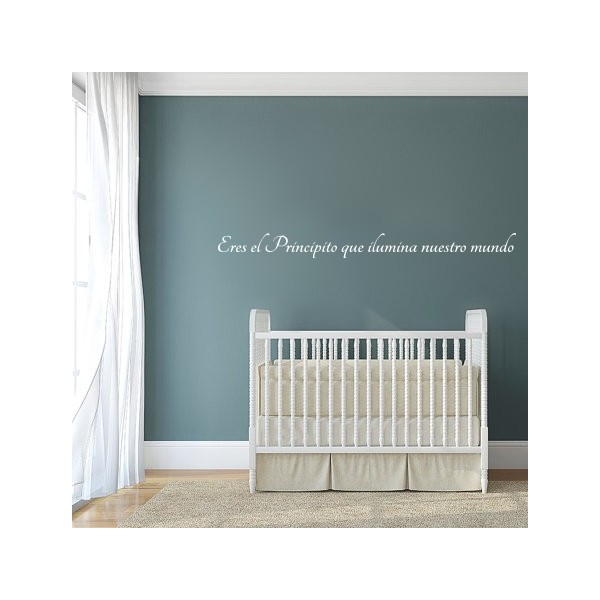 Los colores de los vinilos de texto con la frase "Eres el principito que ilumina nuestro mundo" que aparecen en está simulación son una aproximación a su color real, varían en función de la calibración de su monitor.