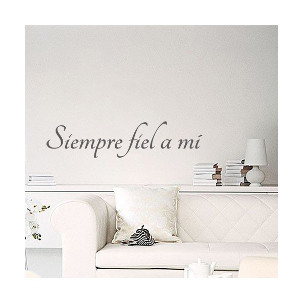 Vinilo de texto con la frase "Siempre fiel a mí", para decoración de interiores y paredes, recomendado para superficies lisas. Son muy sencillos de colocar, y la colocación es muy limpia y rápida.