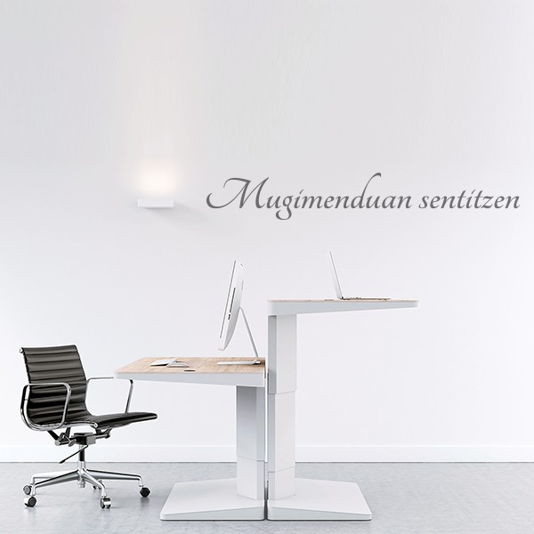 Vinilos decorativos con frase "Mugimenduan sentitzen", en euskera para decoracion de interiores y paredes del hogar o de tu espacio de trabajo, recomendado para superficies lisas. La colocación es muy limpia, sencilla y rápida.