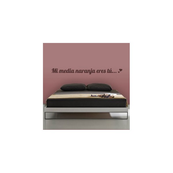 Vinilos decorativos de textos con la frase "Mi media naranja eres tú..." y dos corazones para decoracion de interiores y paredes, recomendado para superficies lisas. Son muy sencillos de colocar, y la colocación es muy limpia y rápida.