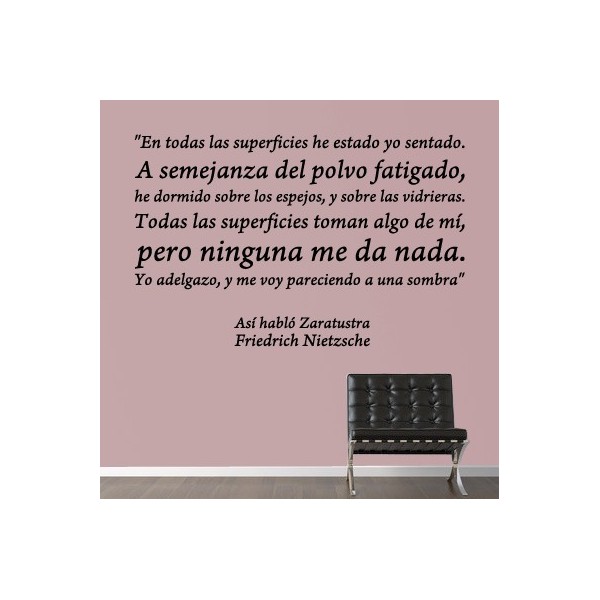 Vinilos decorativos de textos personalizados con fragmento del libro Así habló Zaratustras, de Nietzsche para decoracion de interiores y paredes, recomendado para superficies lisas. Son muy sencillos de colocar, y la colocación es muy limpia y rápida.