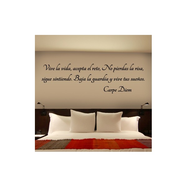 Con estos vinilos decorativos de texto Carpe Diem con una frase sobre la vida puedes decorar con un toque especial tus paredes y darles un estilo único y personal..